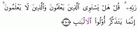 آيات قرآنية قل هل يستوي الذين يعلمون والذين لا يعلمون