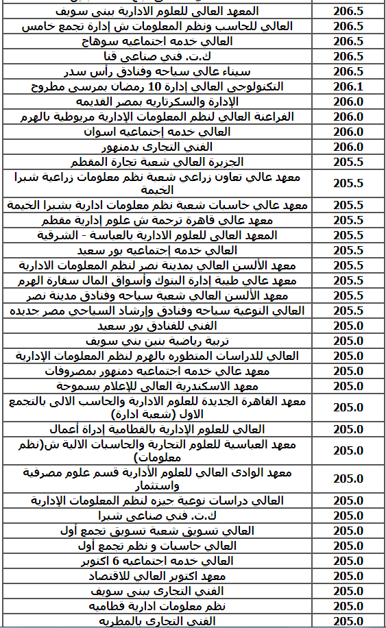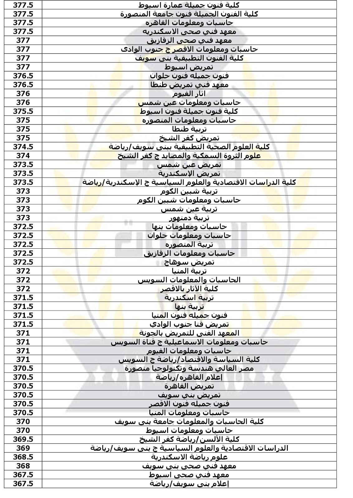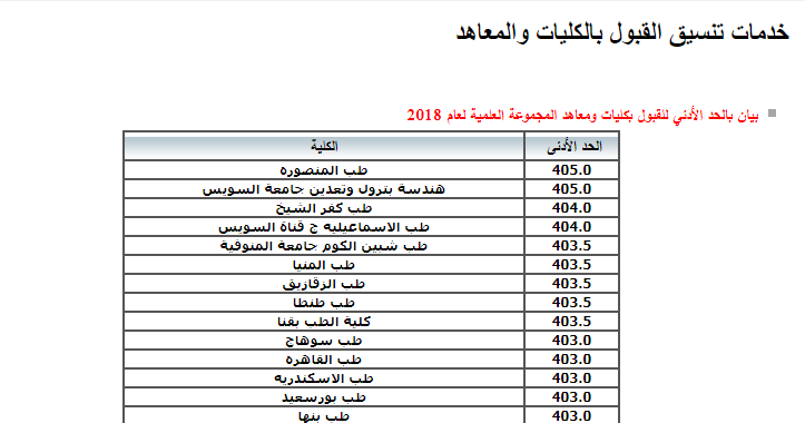 بيان بالحد الأدني للقبول بكليات ومعاهد المجموعة العلمية لعام 2019